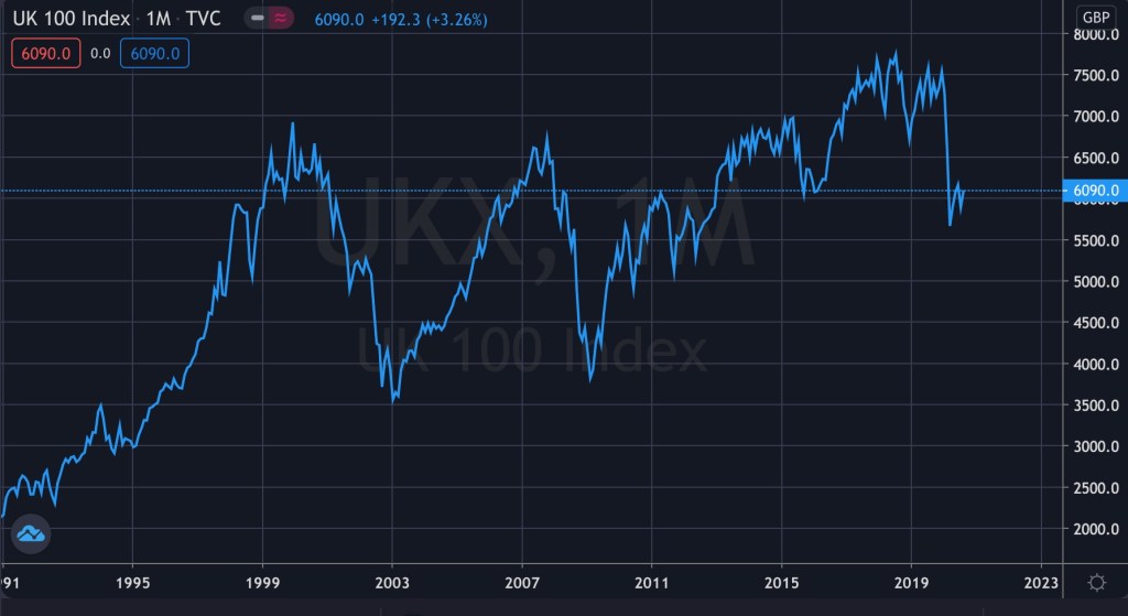 And the UK’s FTSE 100 is at the same level seen 21 years ago.