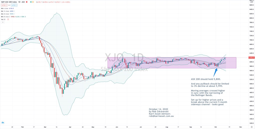 I think any pullback will be limited (see commentary in chart below) and hold 5,995 on the ASX 200.