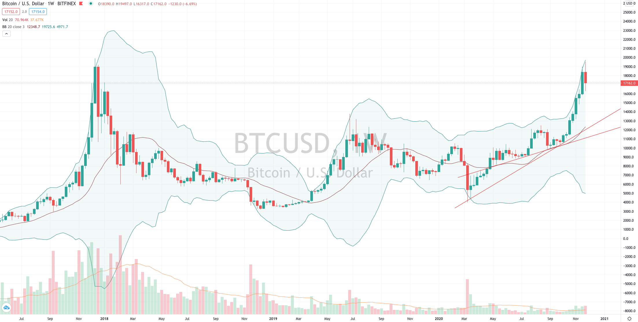 Earlier this week, it lurched a $1,000 higher to reach $19,500 before falling 11% in the past 2 days.