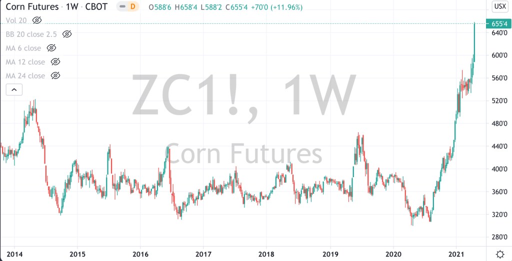 Corn (for the 20th consecutive week & trading 70% above its 200 Week Moving Average)