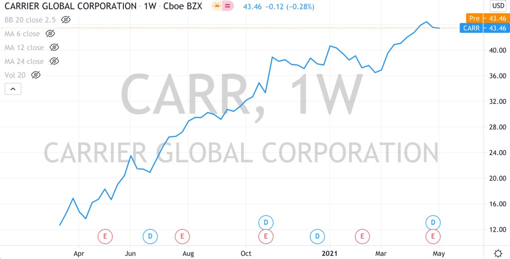 Carrier shares have tripled in the past 12 months and Otis’ have nearly doubled.