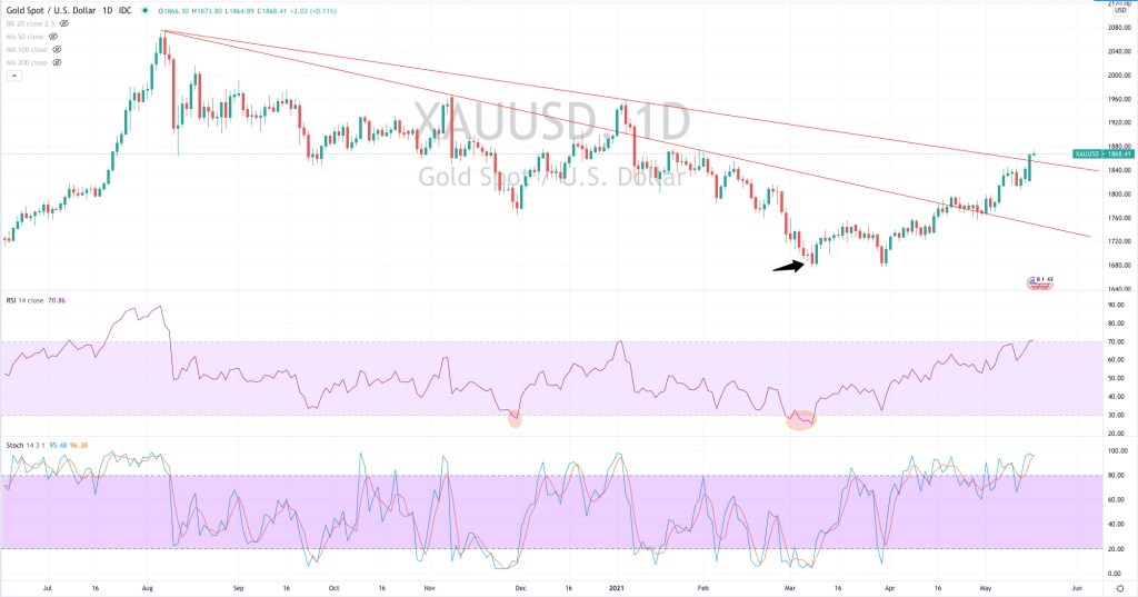 last night it broke above a trendline,