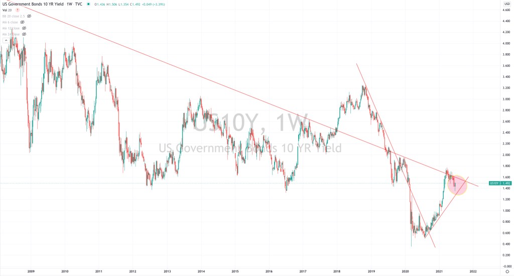 I was watching whether the U.S. 10 year government bond yield broke above 1.75%……I am now revising this…the number is now 1.62%.