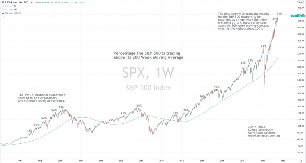 This Overbought moment is also occurring with some coincidence of it also trading at its highest percentage above the 200 Week Moving Average (WMA).
