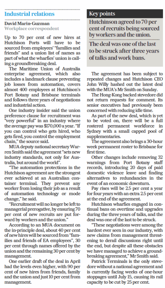 and further below is an extract from another article from the AFR (2 week ago) discussing a new employment agreement, which I was flabbergasted to read.