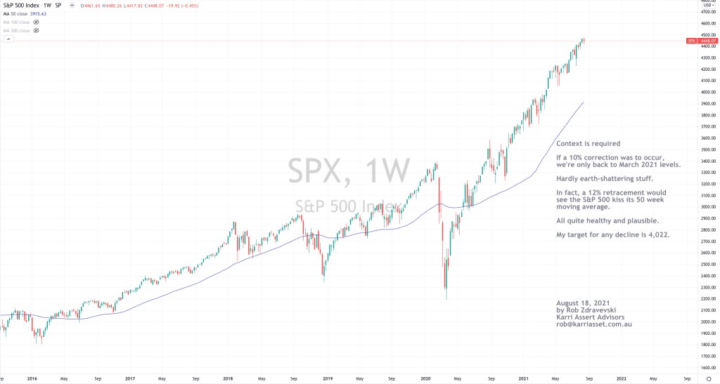 If a 10% correction in the S&P 500 was to occur, we’re only back to March 2021 levels.