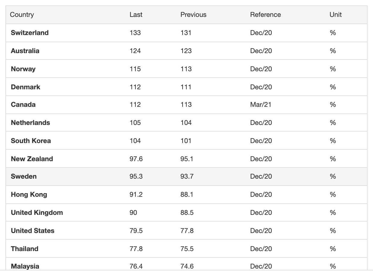 These countries don’t have large consumer debt levels, unlike Korea or others appearing in the list below.