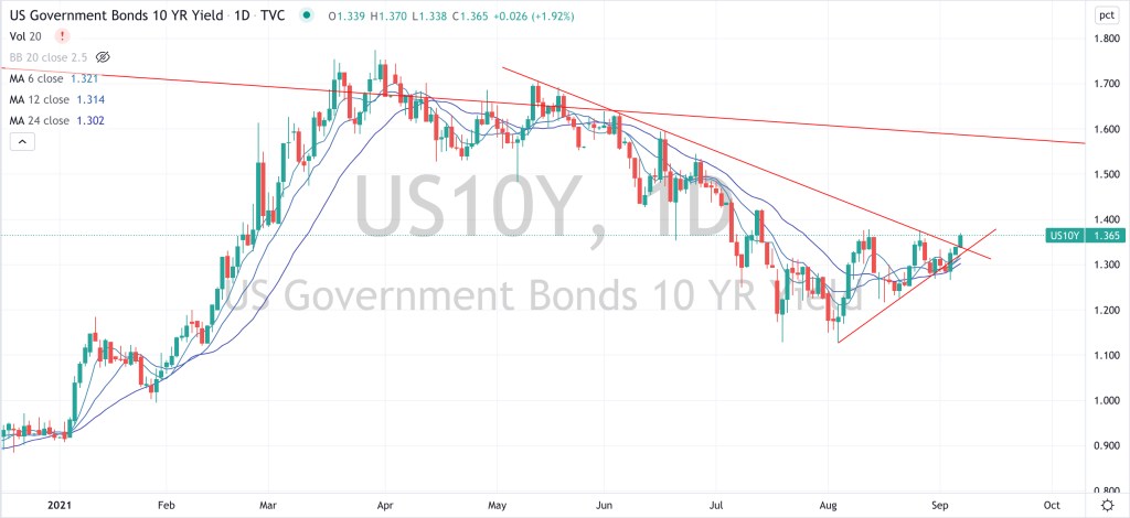 Whoot ! U.S. 10 year government yields have broken above a trend line I’ve been watching.