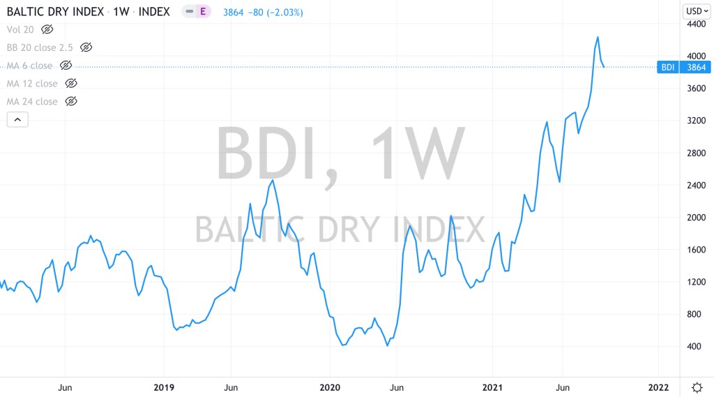 10 fold rise in Baltic Dry Shipping Index