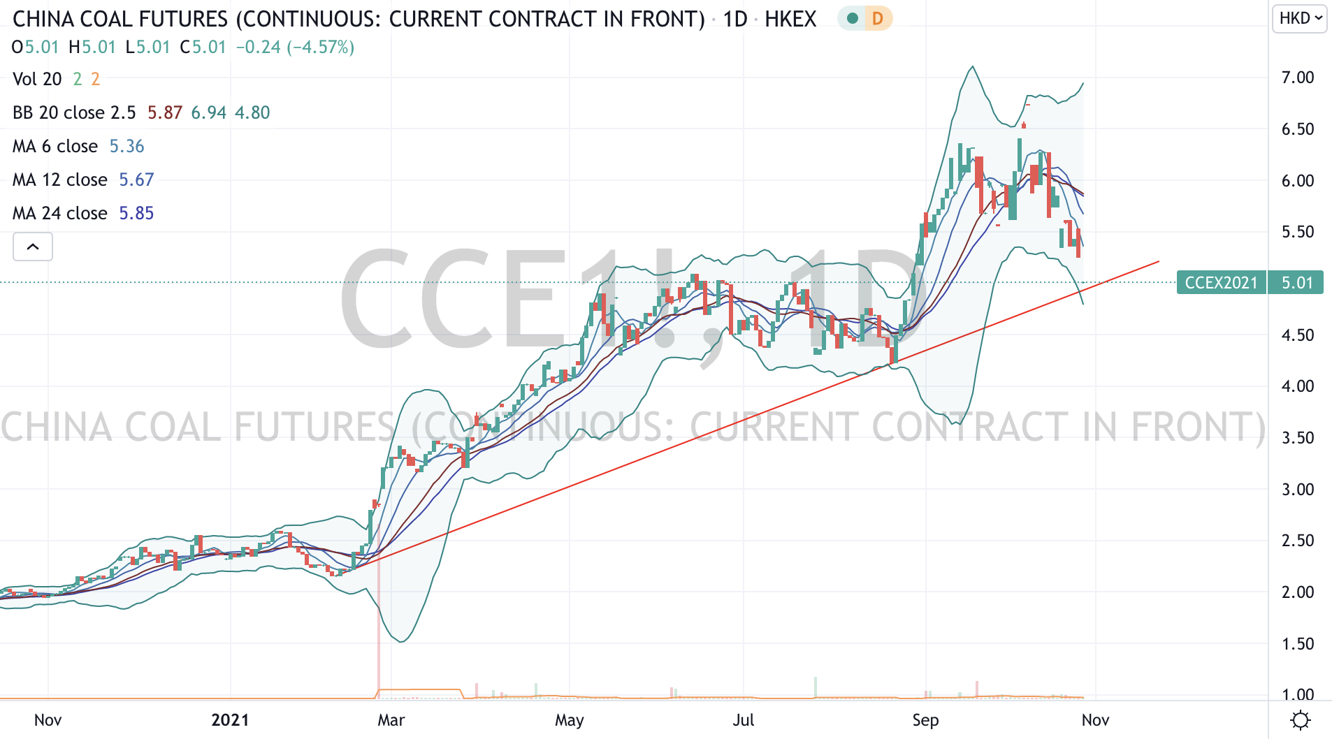 A break below HK$4.90 will see this daily downtrend accelerate.