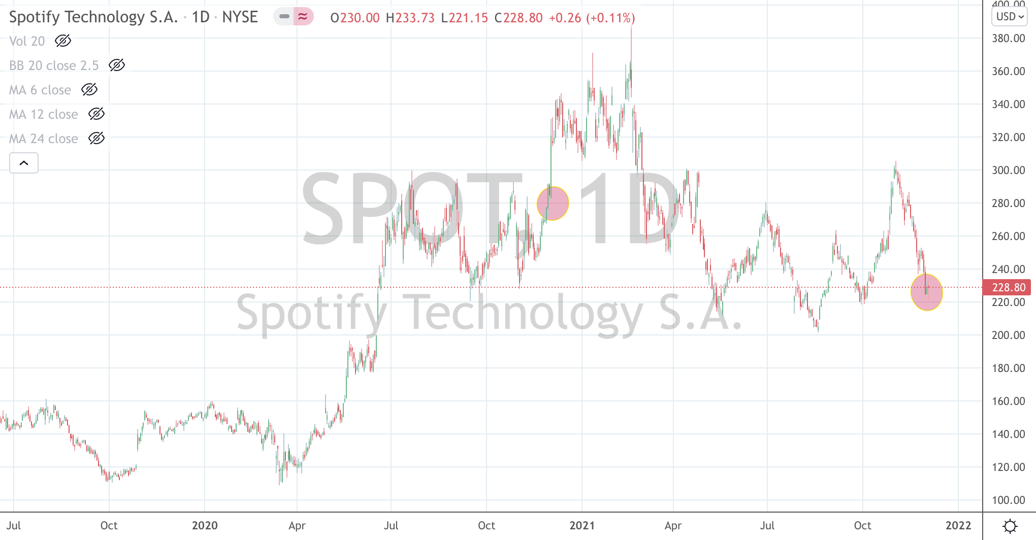 Client portfolio’s have owned that stock before. Happily, those positions were sold at $240 in September 2020 (almost 15 months ago).