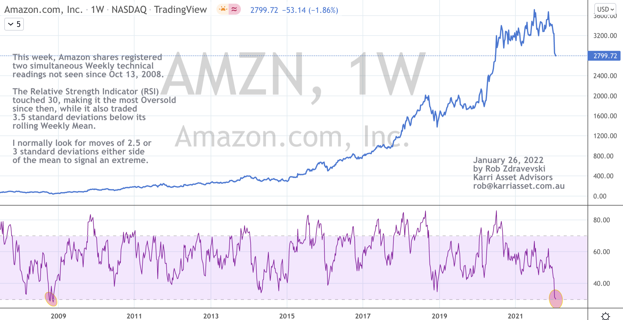 Simultaneously this week, #amazon shares registered two Weekly technical readings last seen 13 years ago (Oct 13, 2008).