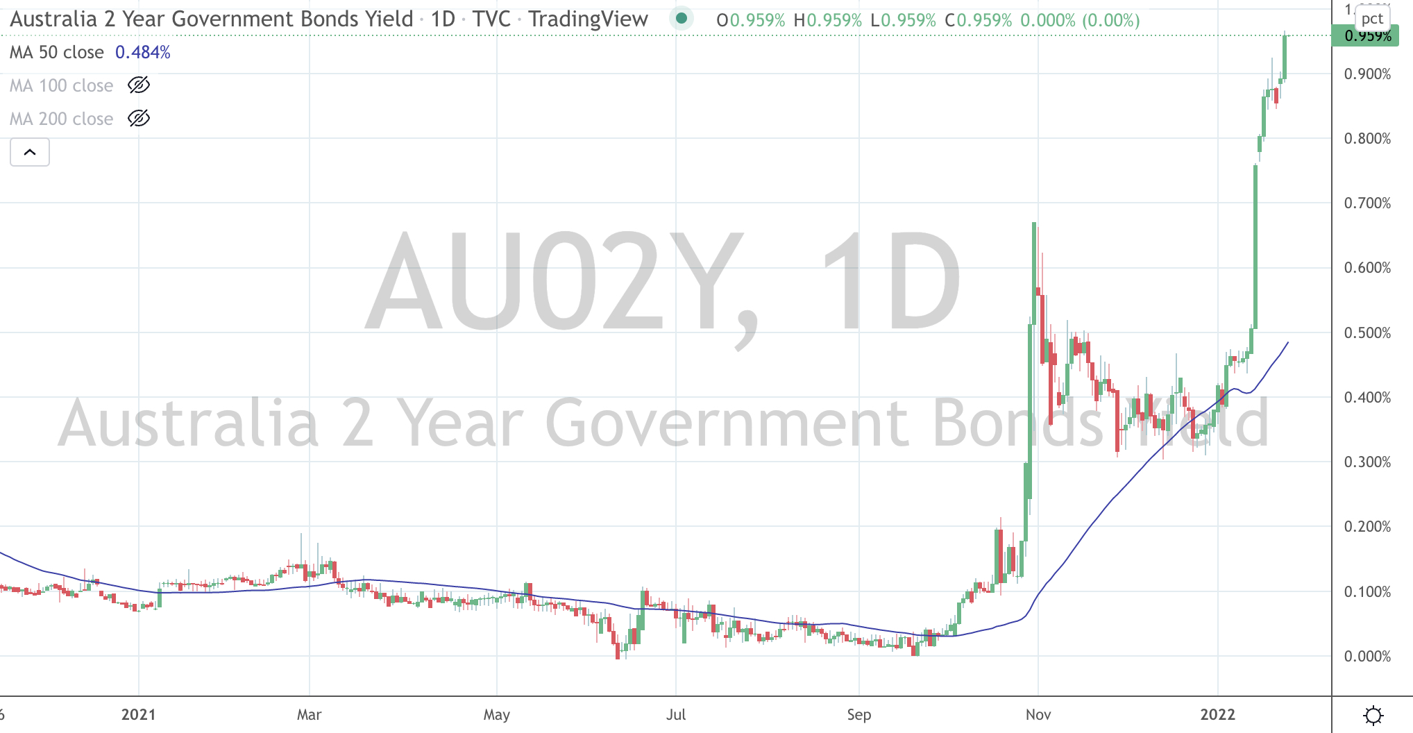 The cost of short-term money in Australia has risen 9 fold from 0.1% to 0.9% in only 4 months.