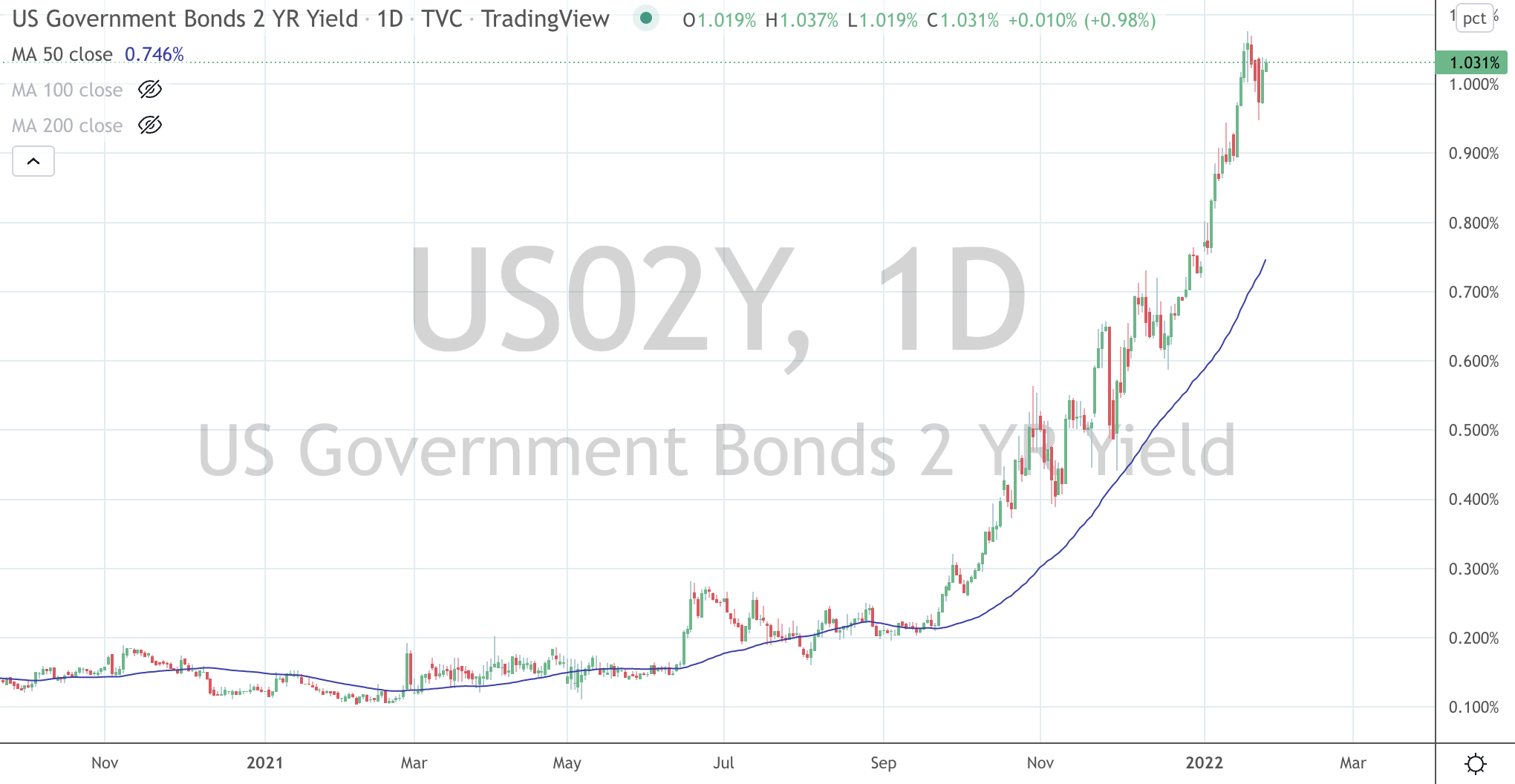 I want to highlight the parabolas seen in short term rates, namely the Aussie and U.S. 2 years bond yields.