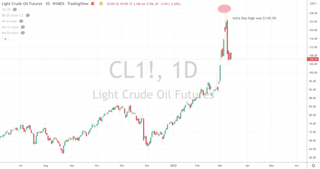 When you ponder that someone bought that Oil at that $130.50 high and should they still hold it, they are comforting a 18%.