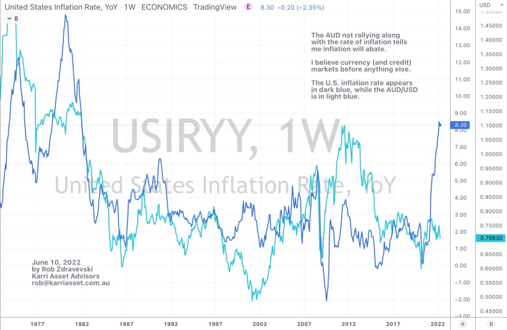 The AUD not rallying along with the rate of inflation tells me inflation will abate.