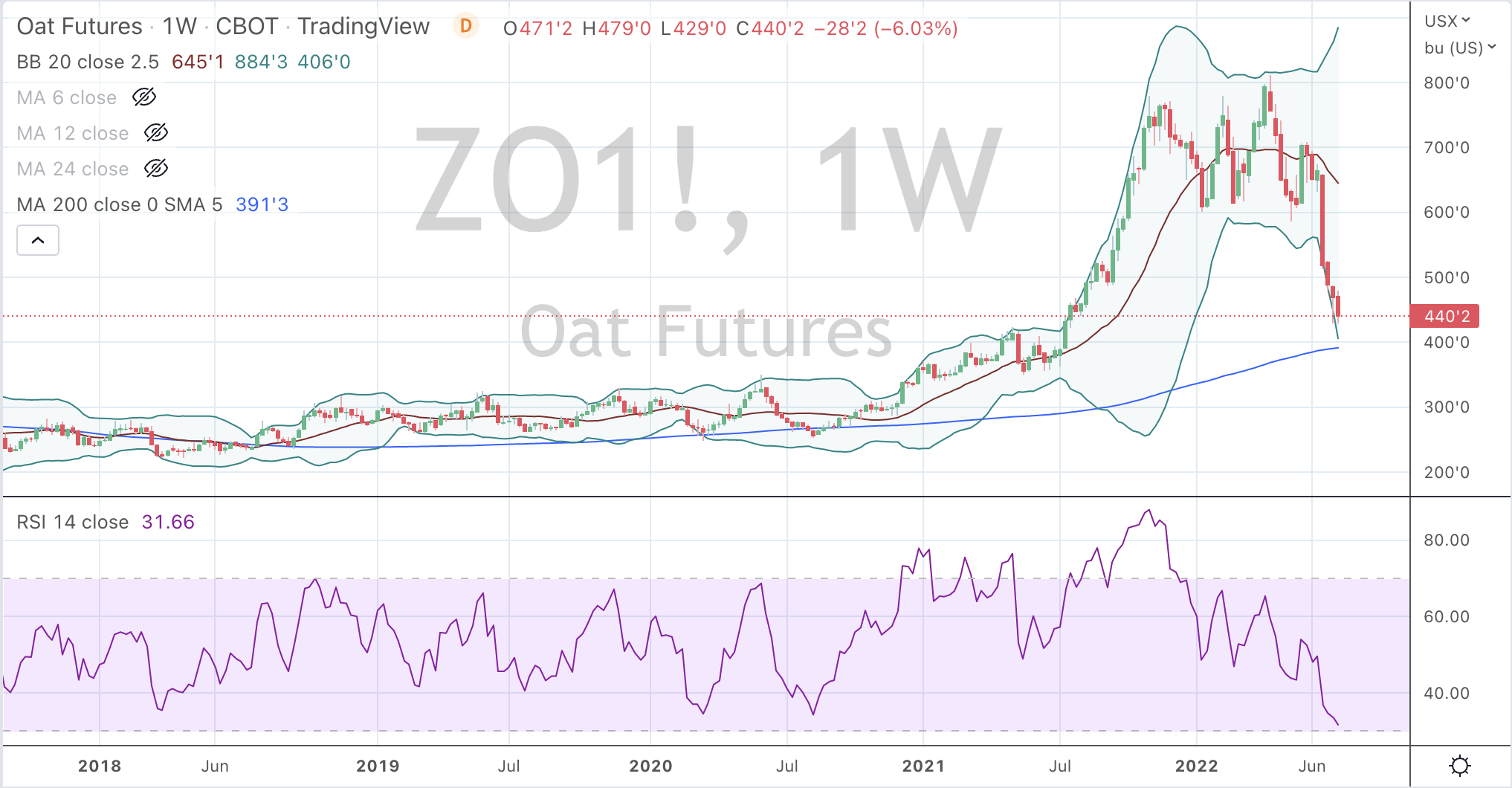 The price of Oats nearly trebled through 2020- 2021 and then stayed elevated for 6 months.