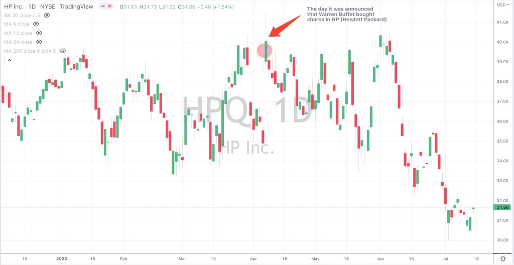 3 months on, the prices of HP and Twitter are both at least 24% lower than the morning when Buffet and Musk appeared in the headlines are a buyer or suitor of the aforementioned stocks.
