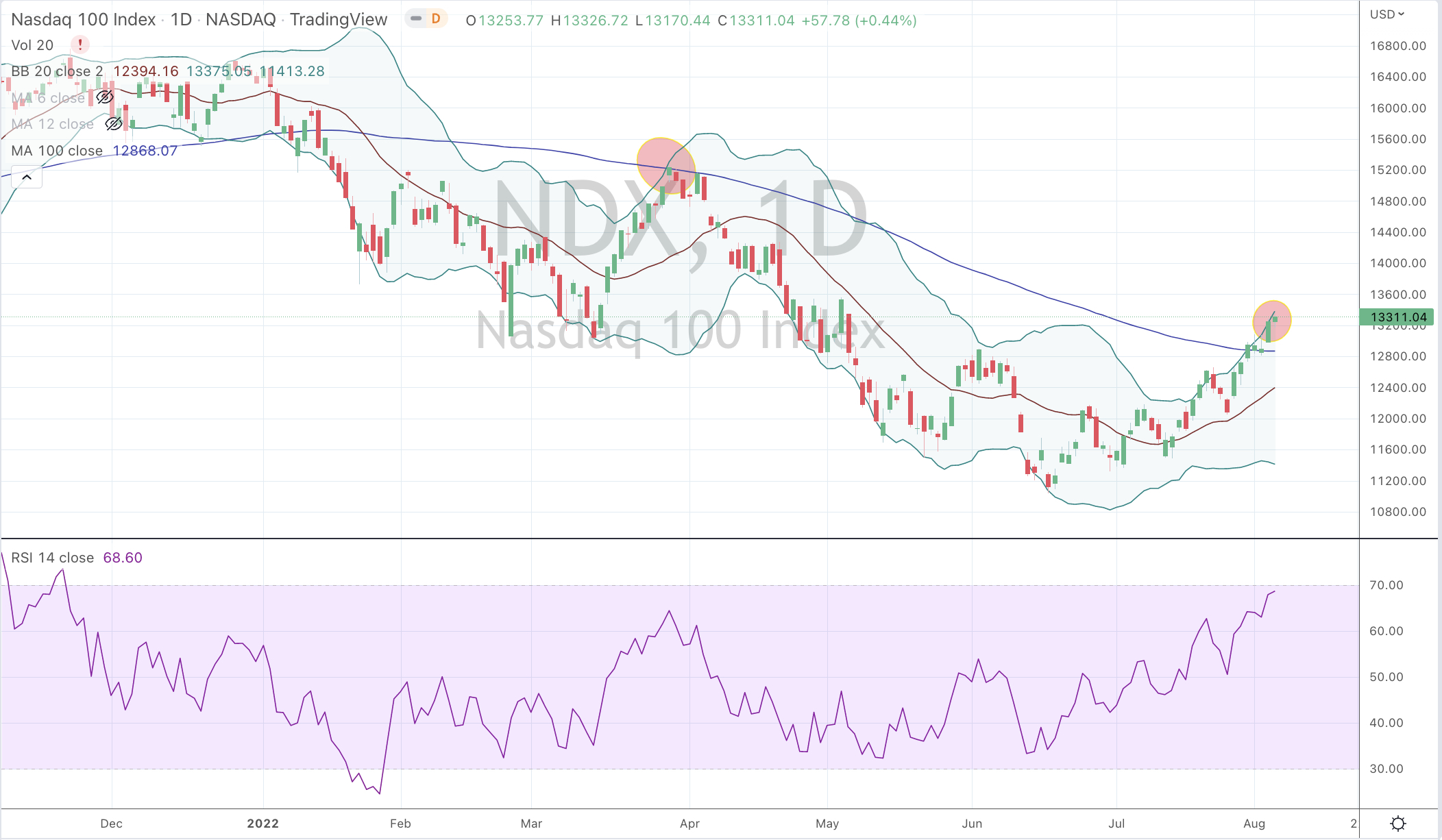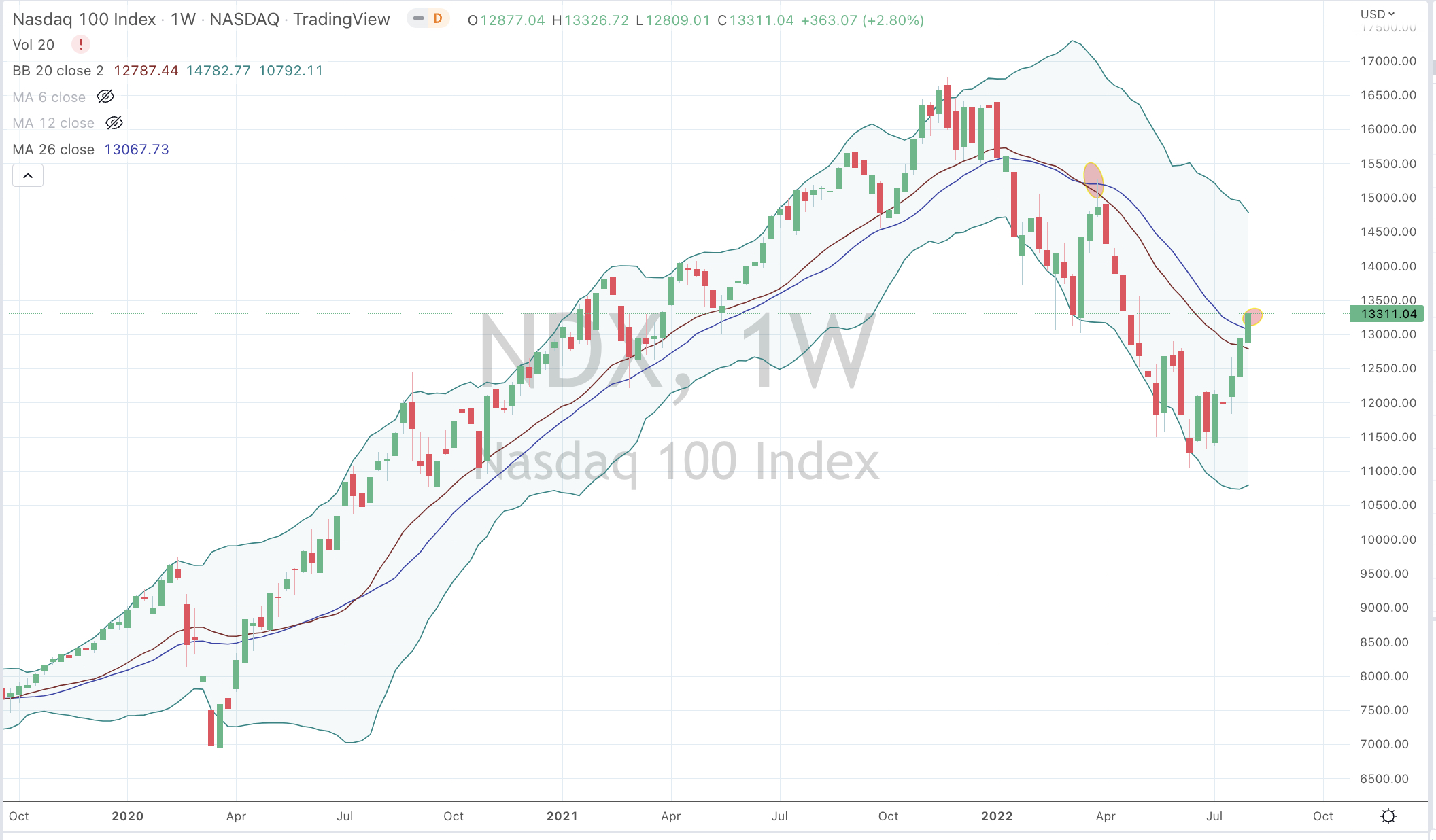 Since the June 16, 2022 lows, the Nasdaq 100 has rallied 19%.