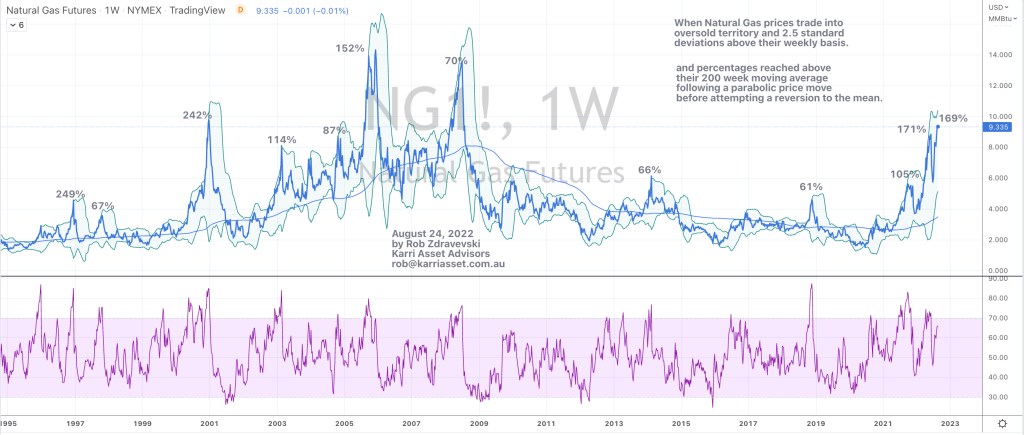 Furthermore, I’ve thrown in the percentages Natural Gas had traded above its 200 week moving average.