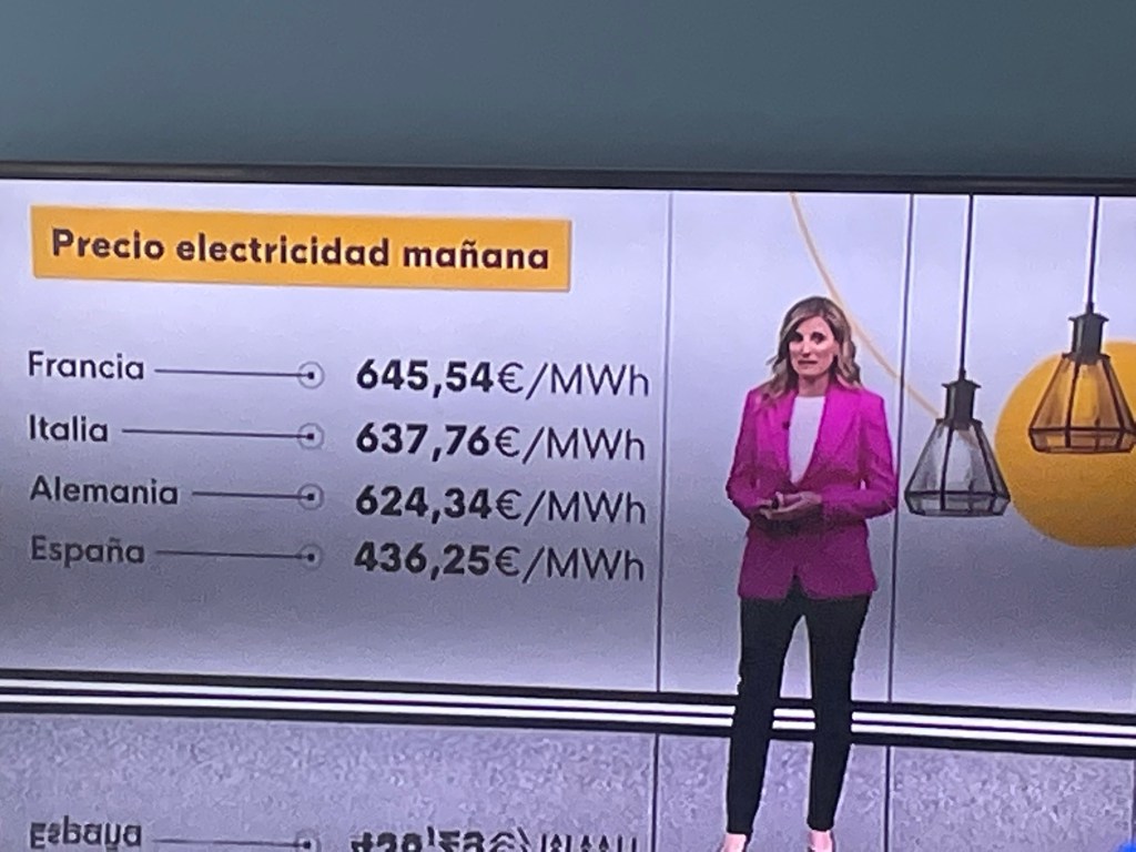 Tomorrow, the Spanish news on TV tells me it will be 43.6 cents per kw/h.