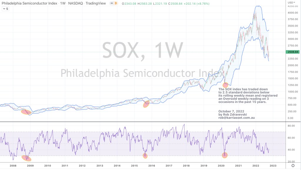 The SOX index has traded down to 2.5 standard deviations below its rolling weekly mean and registered
