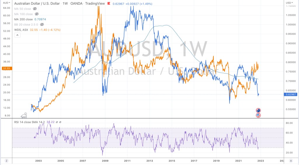 The next directional move in Woodside shares hinge on the direction in and or a combination of the Japan/Korea LNG Marker, the U.S. Natural Gas price, the West Texas Intermediate (WTI) Crude Oil prices along with the AUD/USD.