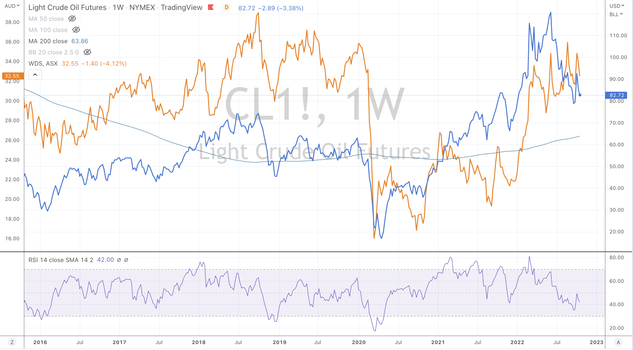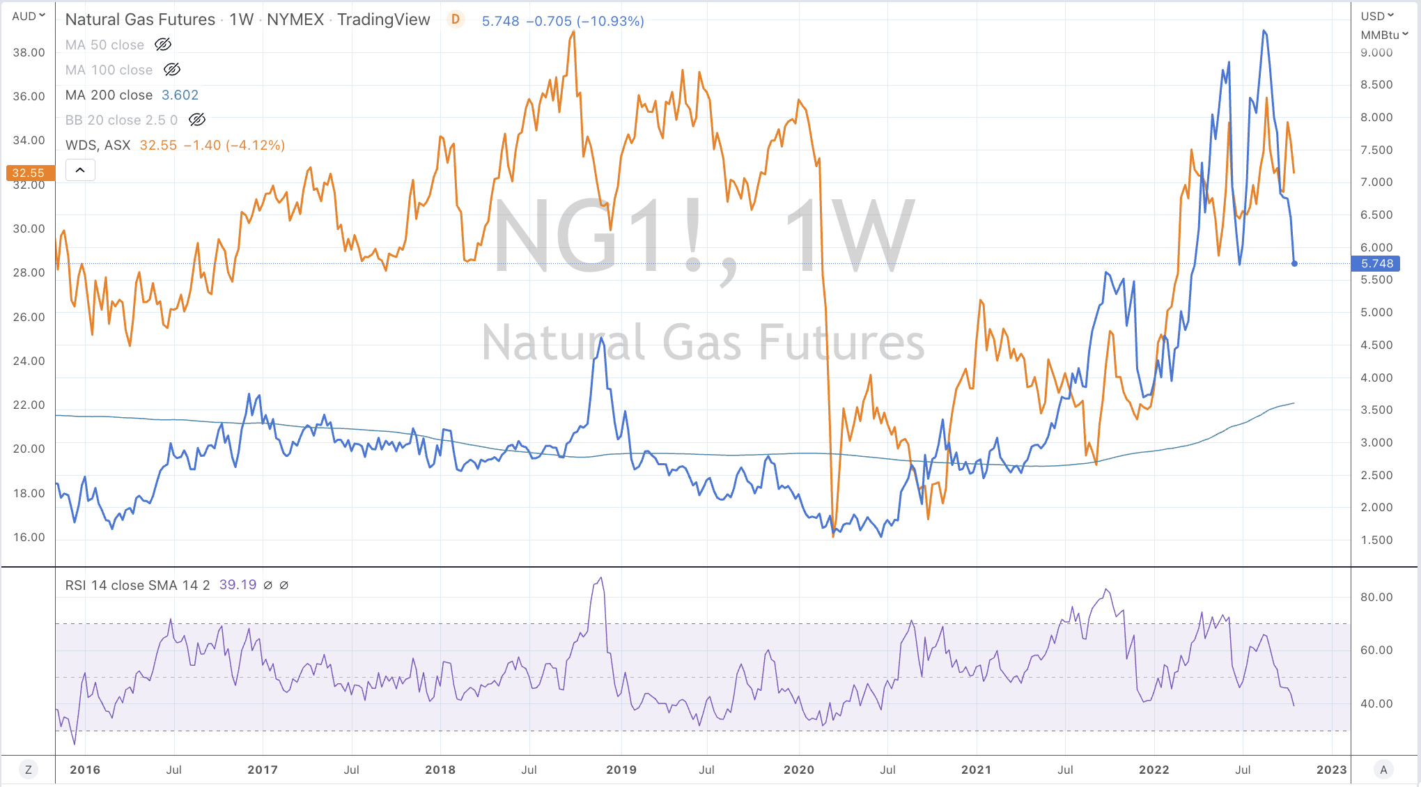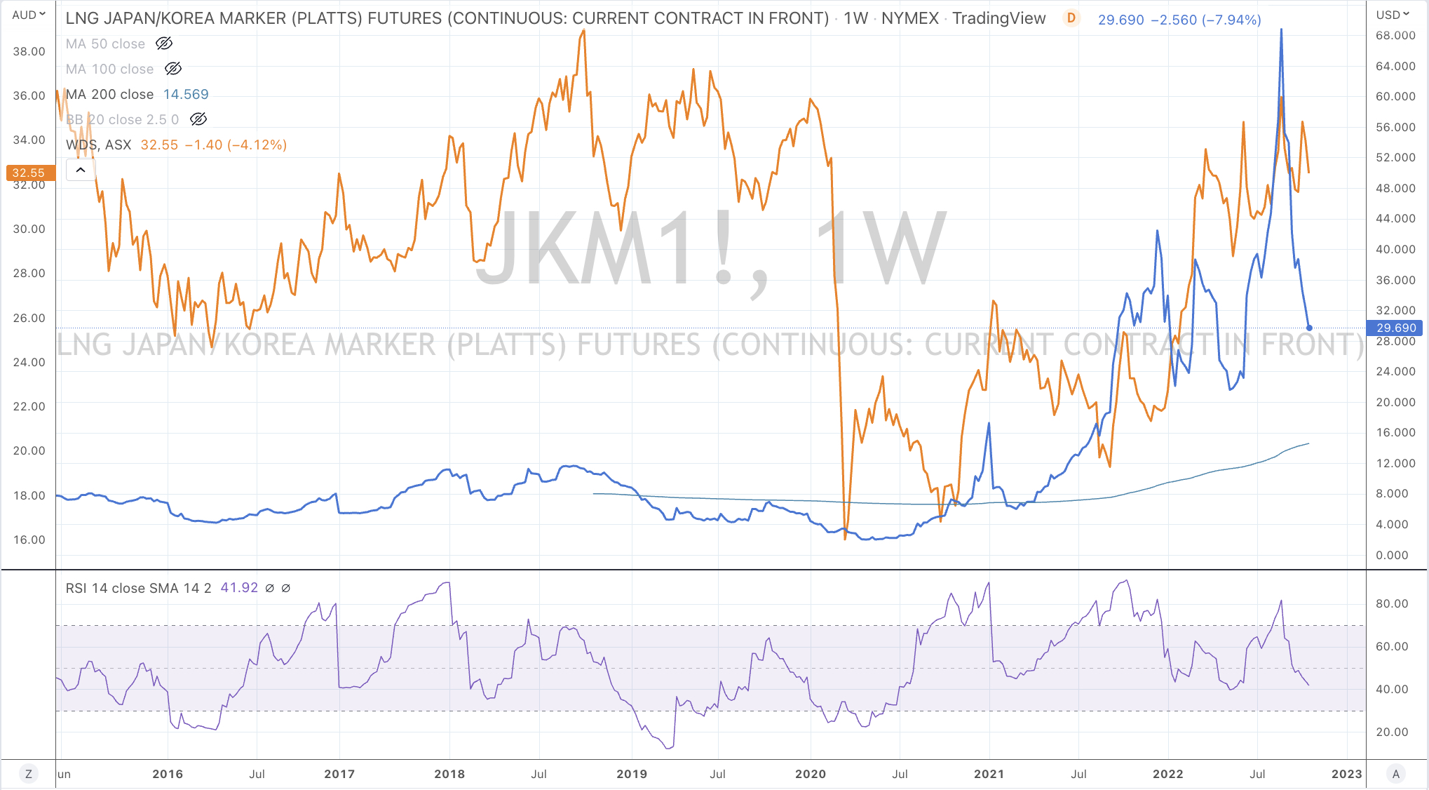 The next directional move in Woodside shares hinge on the direction in and or a combination of the Japan/Korea LNG Marker, the U.S. Natural Gas price, the West Texas Intermediate (WTI) Crude Oil prices along with the AUD/USD.