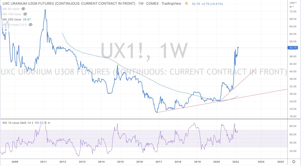 I think the price of uranium is prone for some mean reversion back to the $34 – $38 mark, perhaps occurring into January 2023.