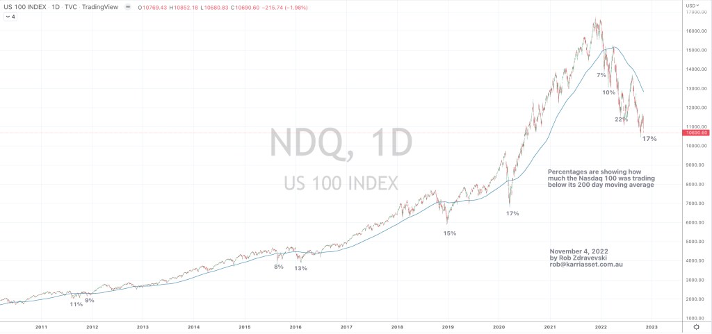 This chart revisits the percentages which the Nasdaq 100 was trading below its 200 day moving average.