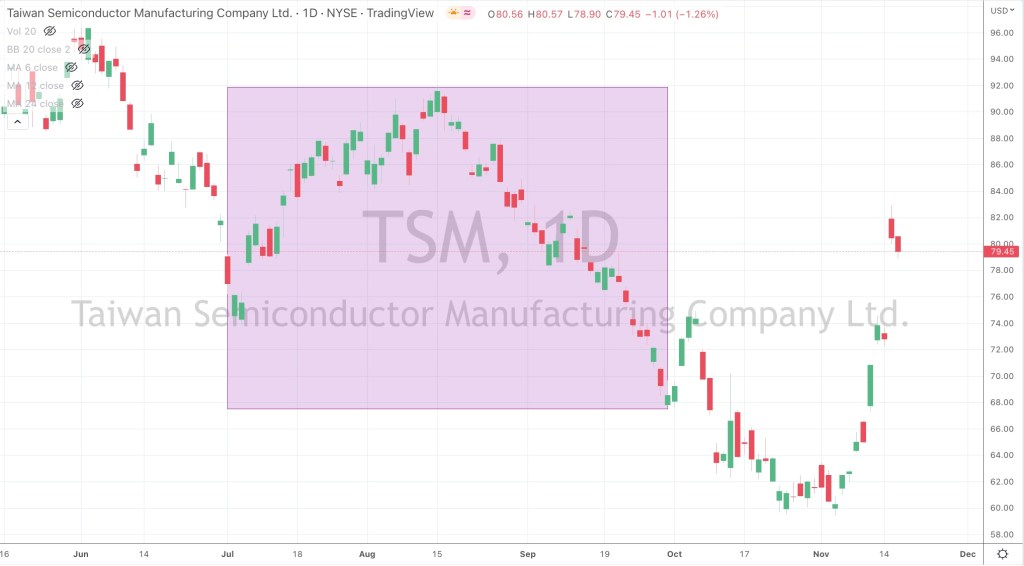 on Tuesday November 15, 2022, TSM stock (a $400 billion market cap company at that) opened 13% higher than its previous day’s close….