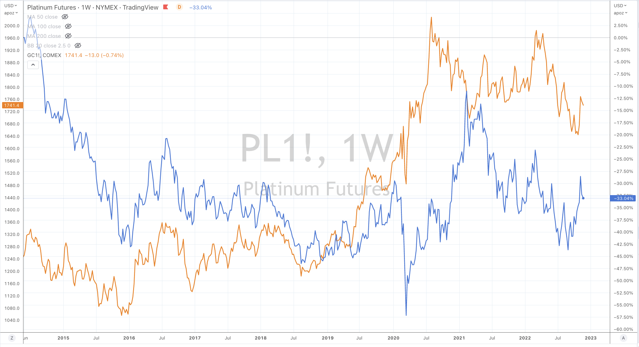 Platinum – touched a 2.5 standard deviation overbought level While I expect it to decline a further 7% from its current price of $973, Platinum often precedes a move lower on its less precious cousin, Gold.