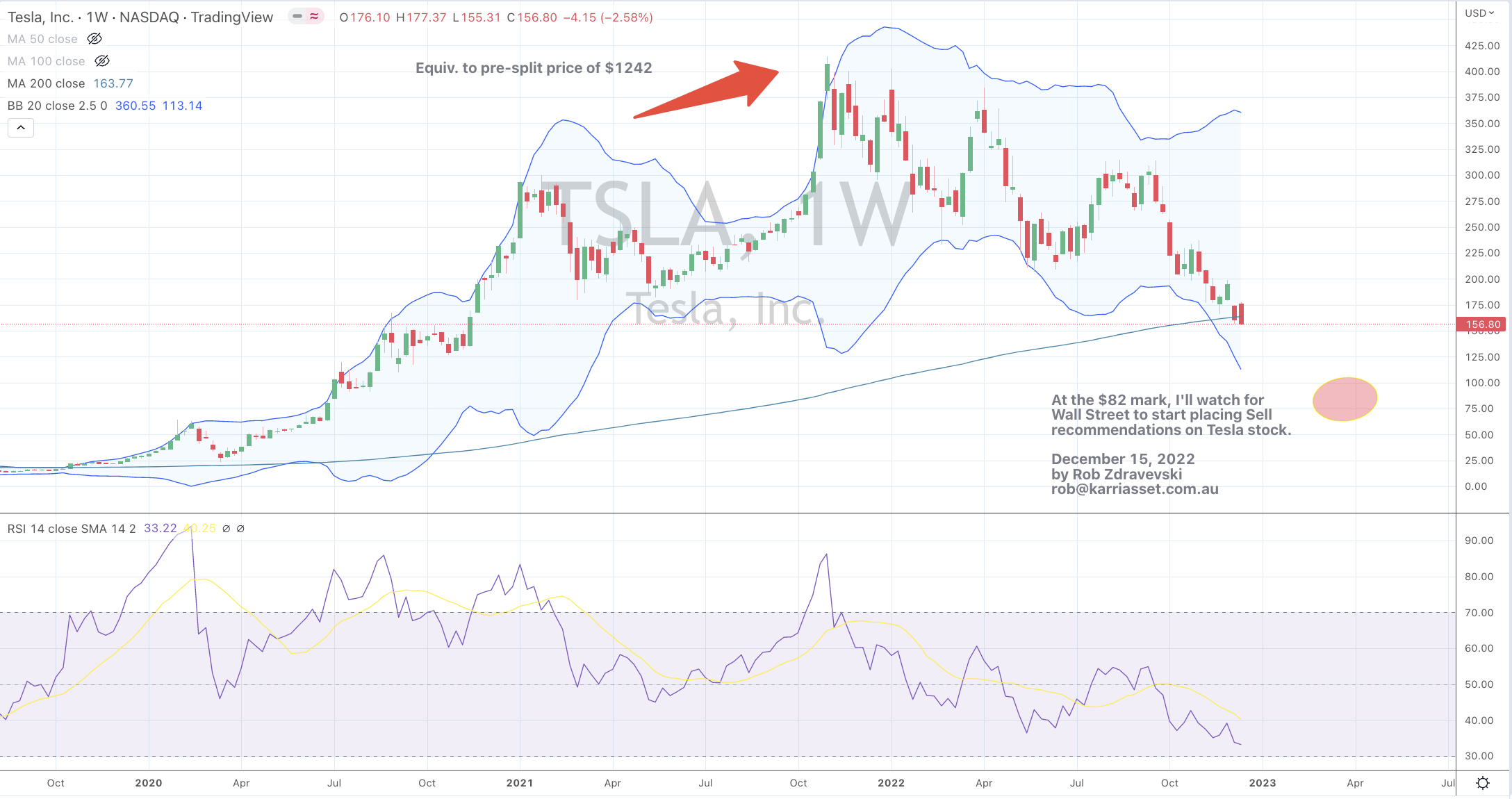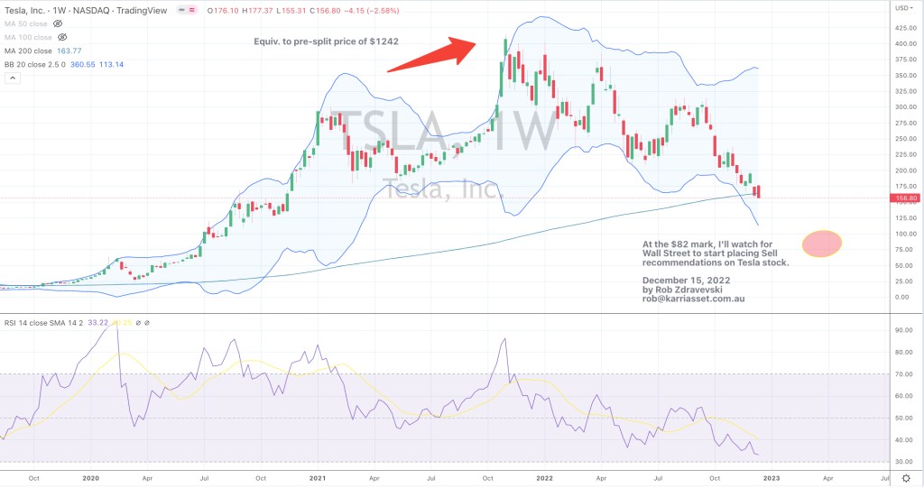 At the $82 mark, I’ll watch for Wall Street to start placing Sell recommendations on Tesla stock.