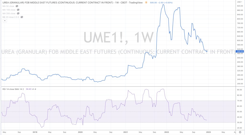 The effect of these price moves is that planned projects now seem unfeasible, financing may be withdrawn while with any deficit in development and production, we may see the price of Urea ultimately rise once we see my expected trough.