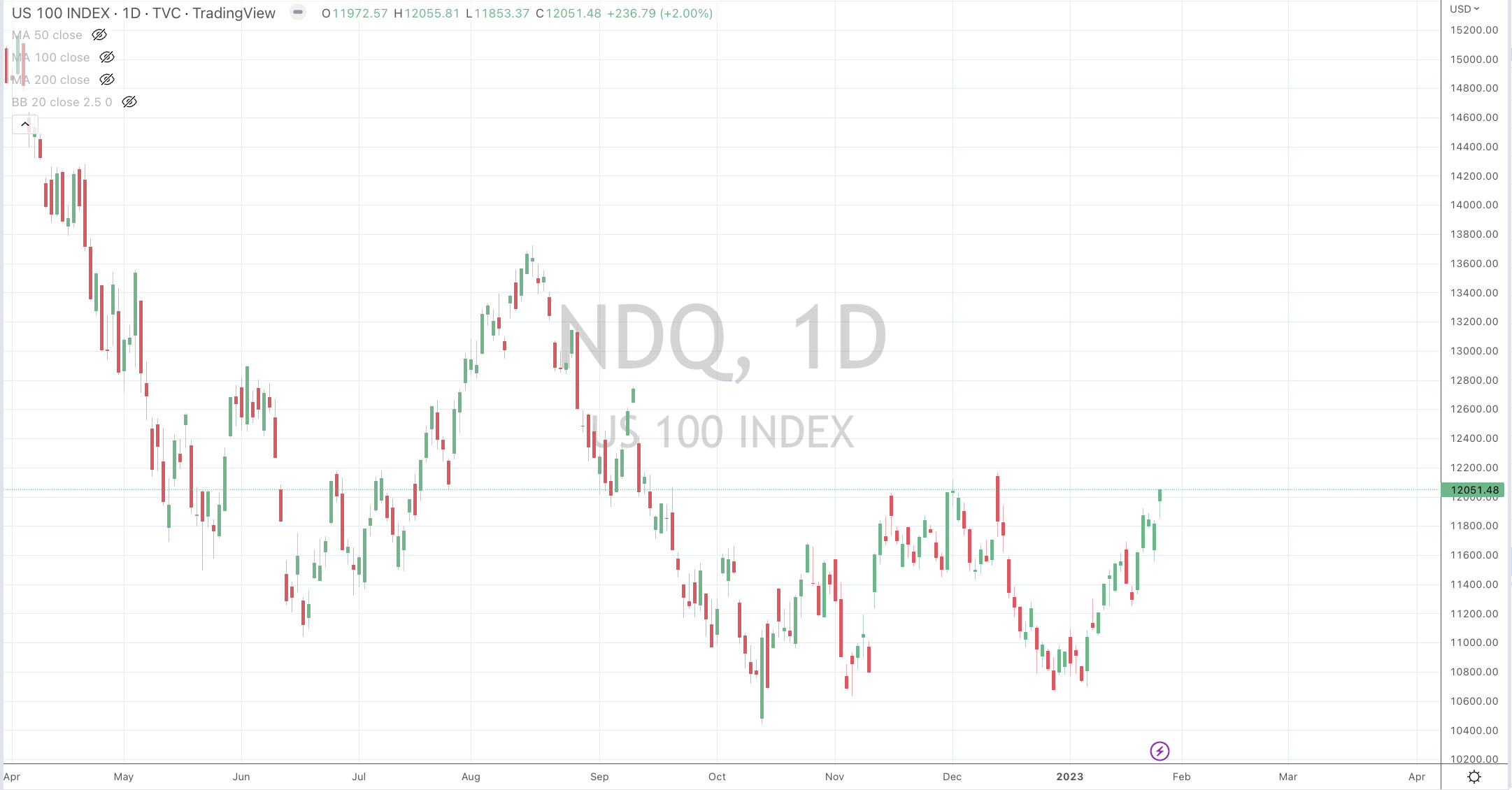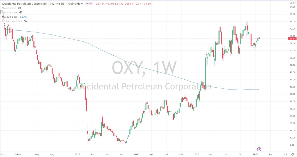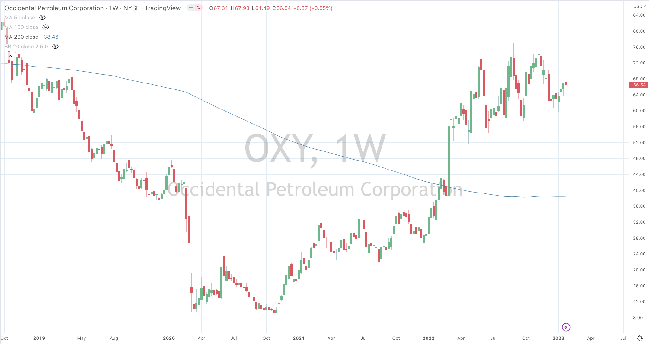 To compliment recent posts about the S&P 400 MidCap Index and Rio Tinto, here are the price charts of the Nasdaq 100 and Occidental Petroleum.