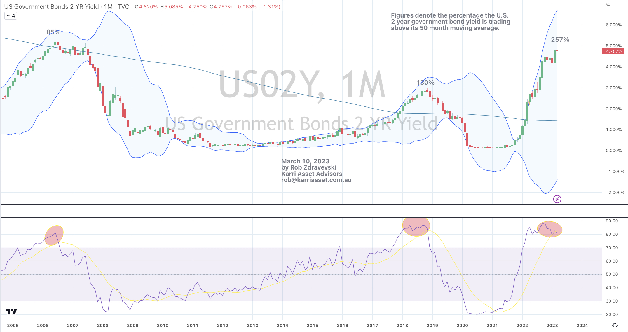 Here are 3 general moments when U.S. 2 year bond yields were extended.