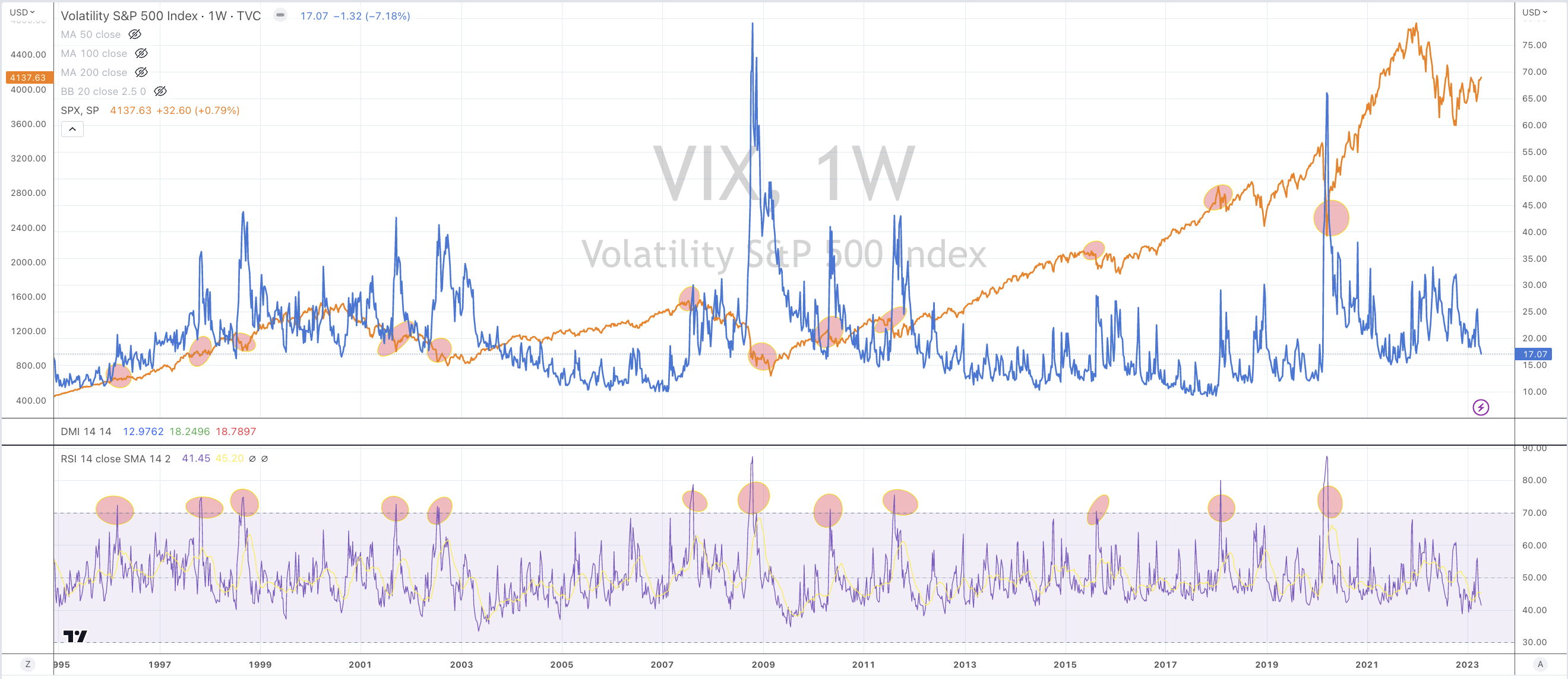 Over the past 30 years, here are 12 moments when the VIX was overbought on a weekly basis and how it corresponded to an adequate signal to accumulate the ‘market’, or the S&P 500 (orange line) in particular.