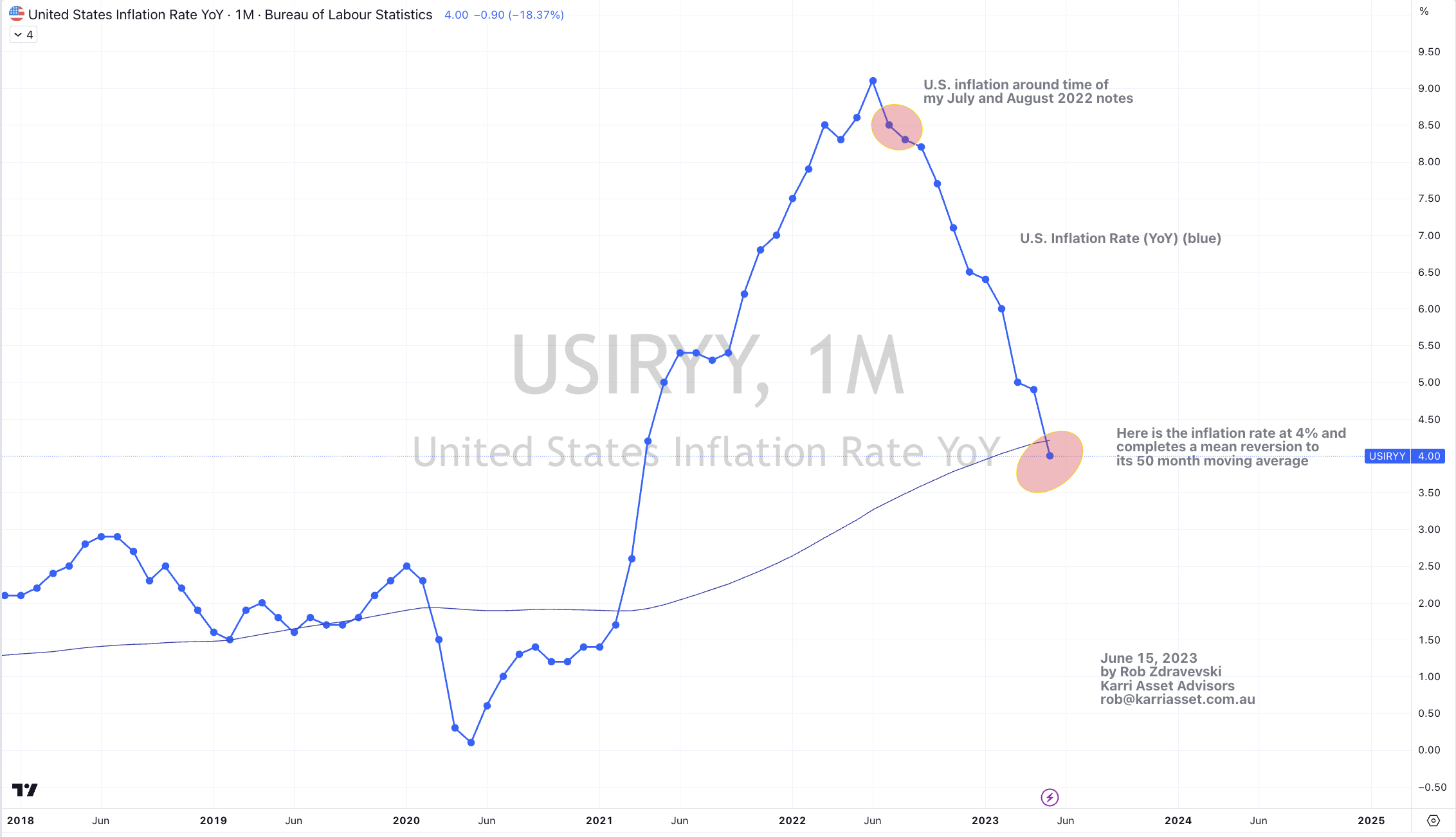 Coming inflation reports over the next 1-3 months may see it reach 3.5% (remember that reported inflation data is a lagging indicator) but that is splitting hairs. The big move has been seen.