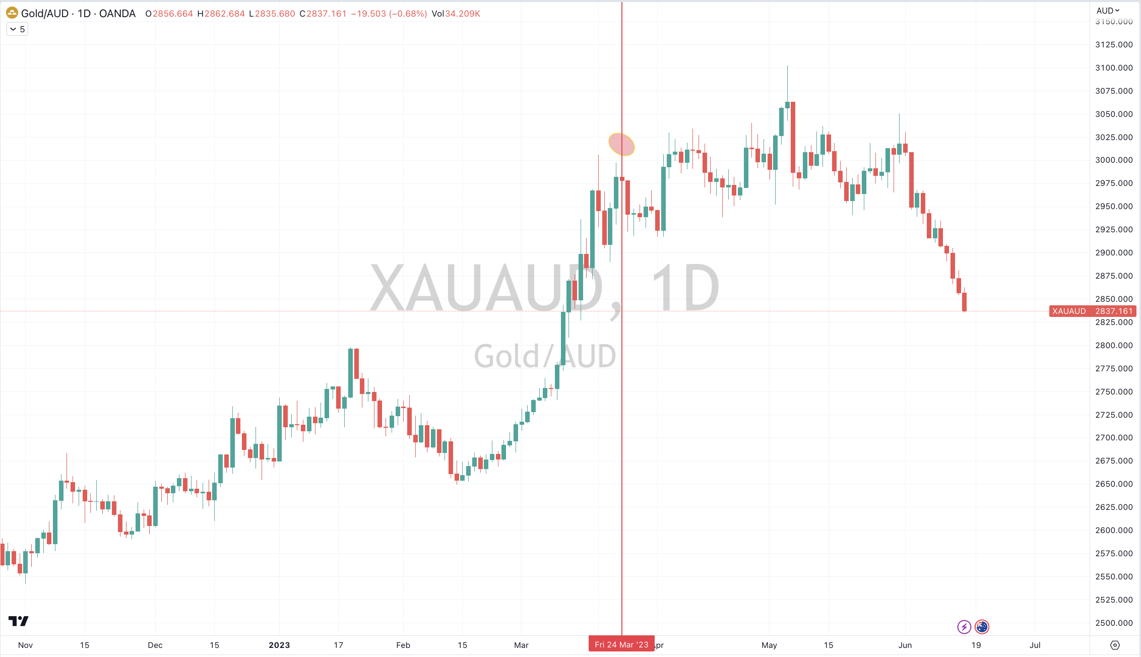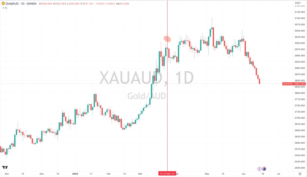 On March 25th, 2023, I made a call to sell Gold exposure priced in Australian Dollars.
