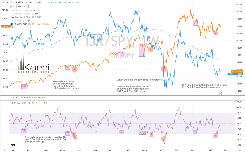 The study below shows the 4 notable times over the past 15 years that the S&P Small Cap 600 Index was oversold when compared to the S&P 500.