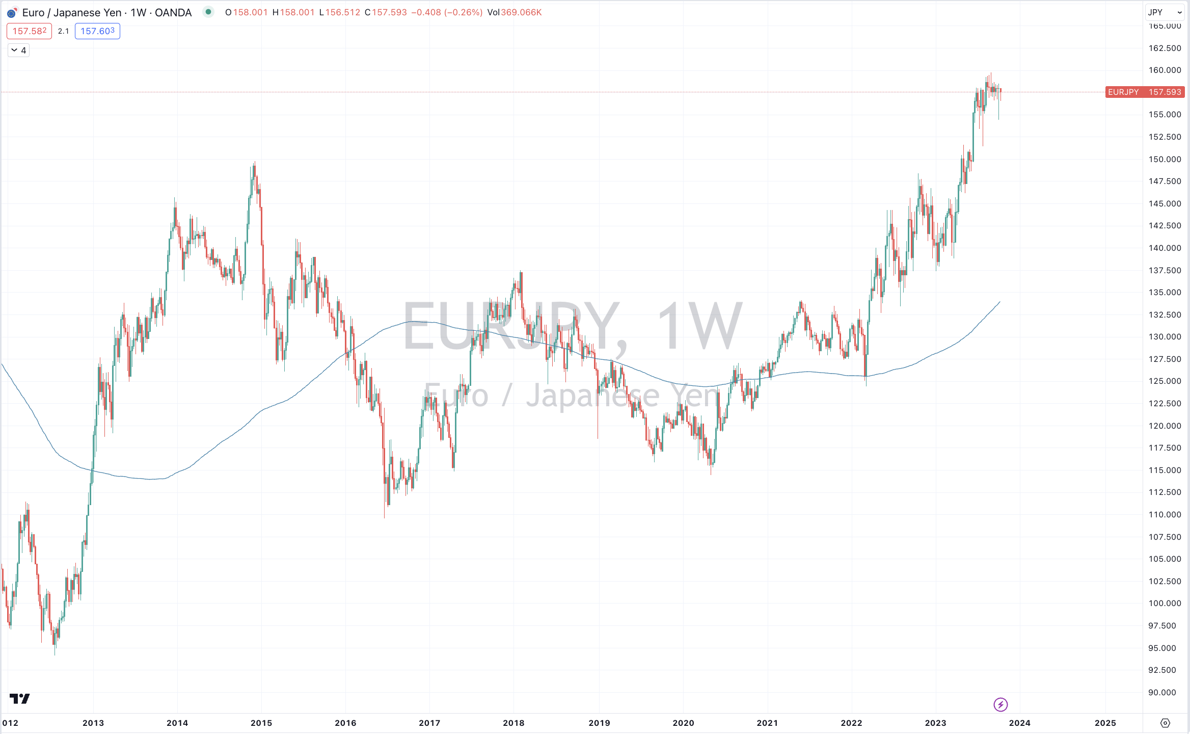 I think this call to sell Euro / Buy Yen made on June 30, 2023 remains valid.