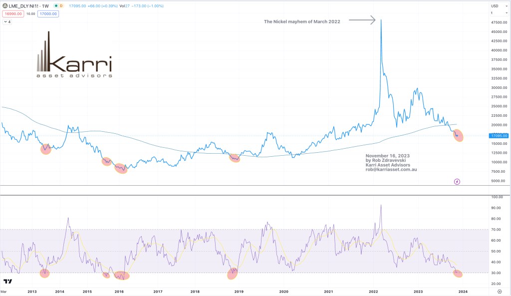 Readers of my weekly Macro Extremes newsletter may have noticed that the Nickel price is appearing in the Oversold category.