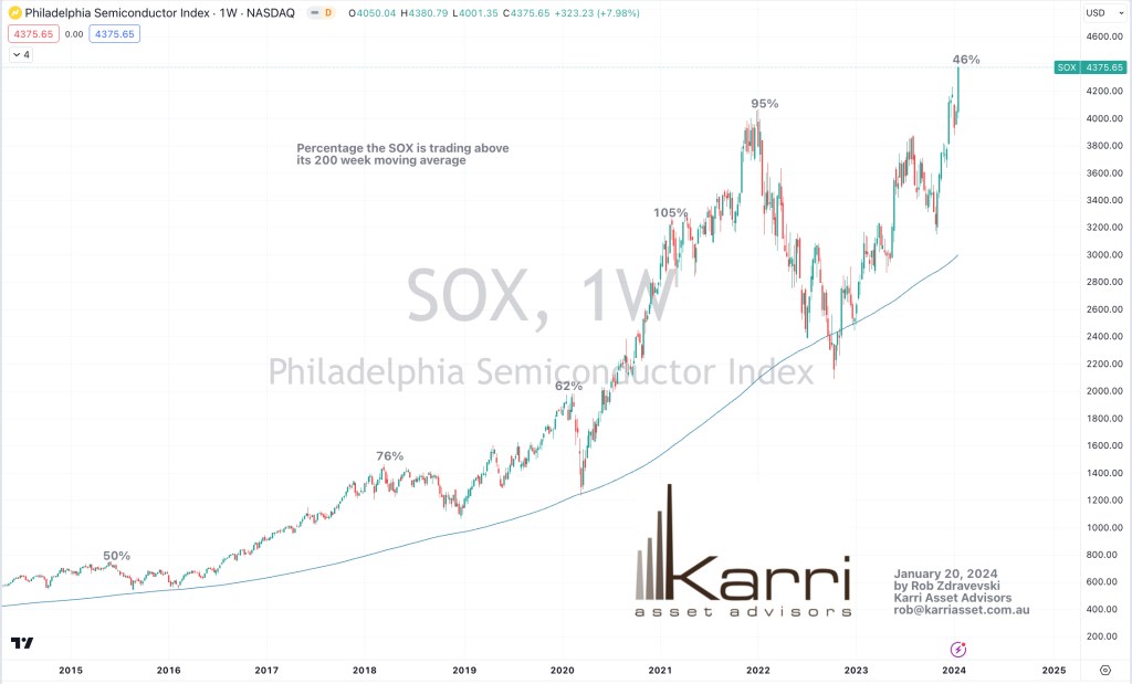 Here is the latest percentage that the #sox is trading above its 200 week moving average.