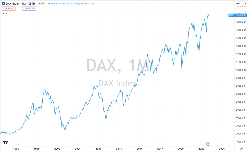 Germany’s main stockmarket has risen about 13% over the past few months, it has climbed about 60% over the last few years and soared 580% over the past 20 years.