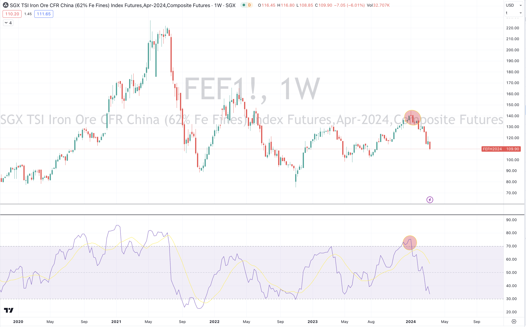 3 months ago, Iron Ore appeared in the overbought category of my corresponding weekly editions of ‘Macro Extremes’.