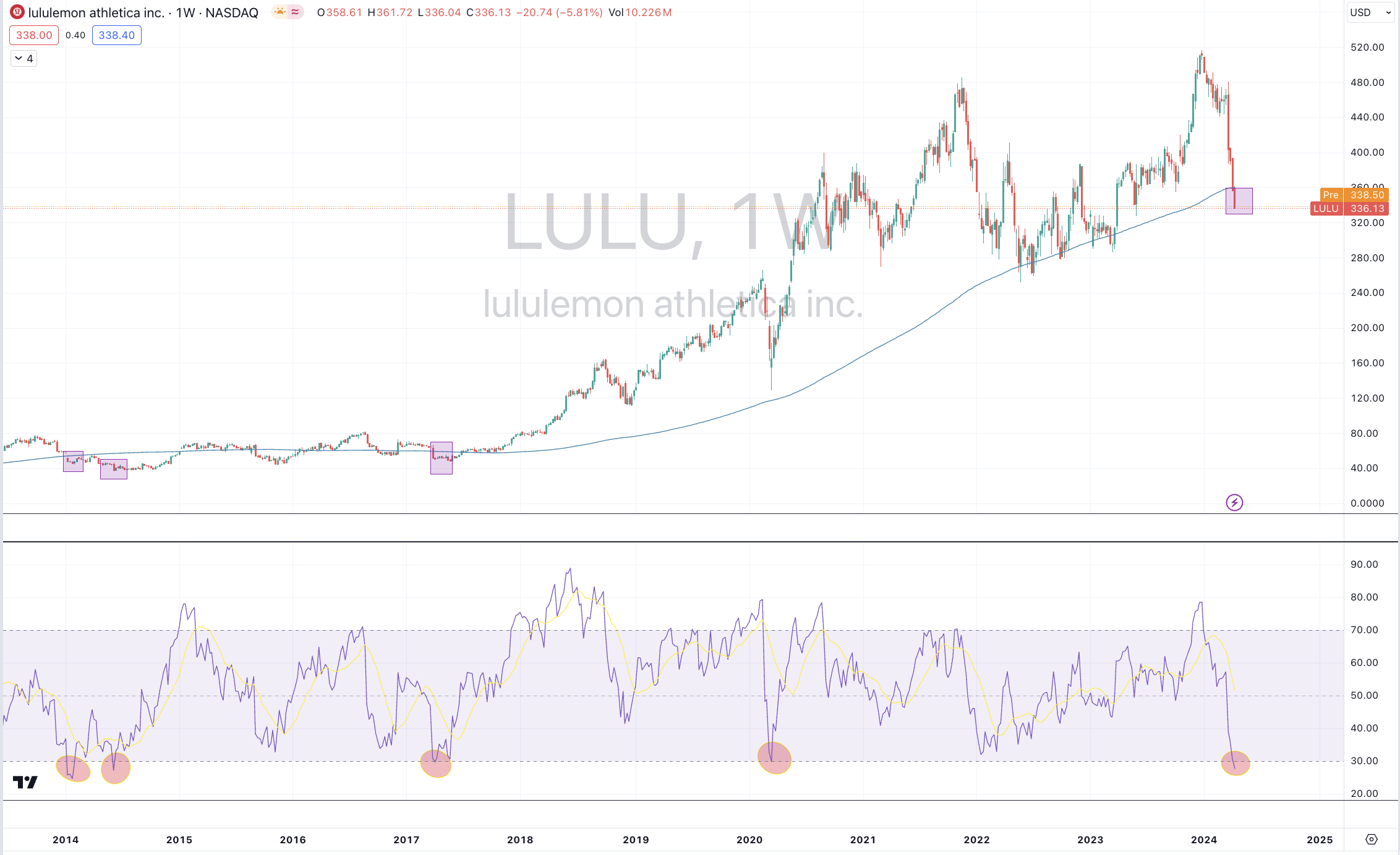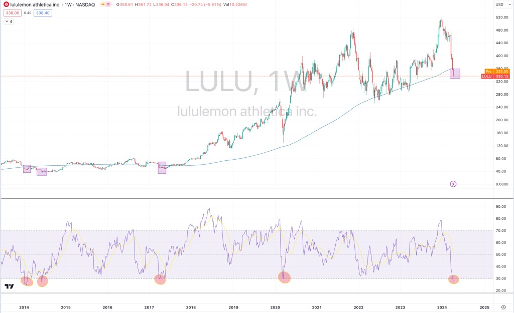 More interestingly, is has mean reverted down to (and below) its 200 week moving average and also registered a weekly oversold reading.