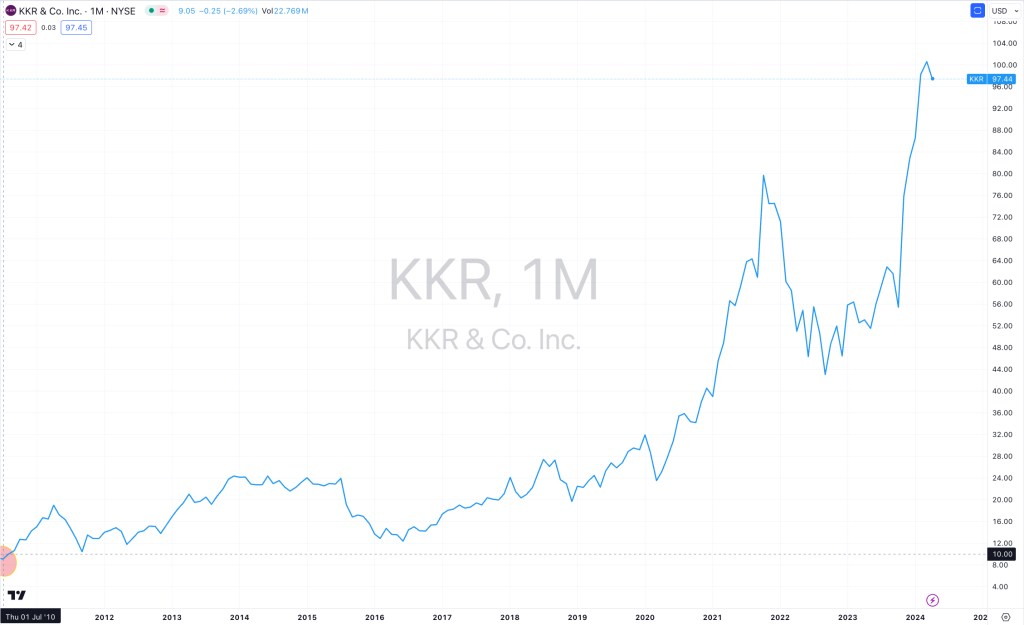 At the time of KKR going public, shares in Blackstone Group (BX) and Fortress Investment Group (FIG) had fallen by 71% and 87% respectively since their market debuts in 2007.