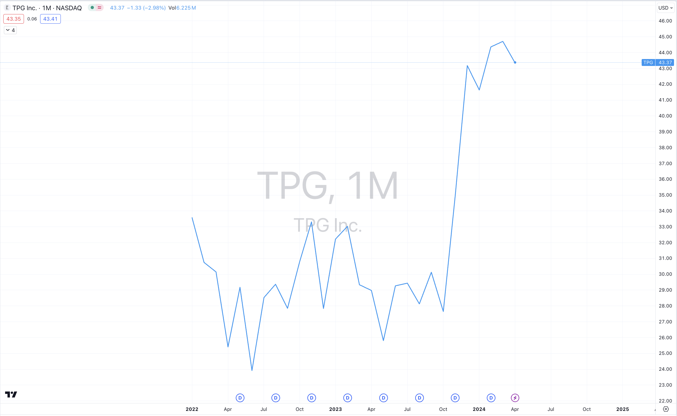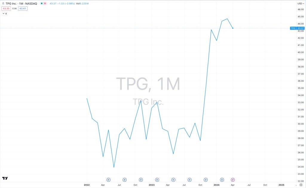 More recently, TPG went public on January 13, 2022, and the IPO was priced at $29.50 per share.