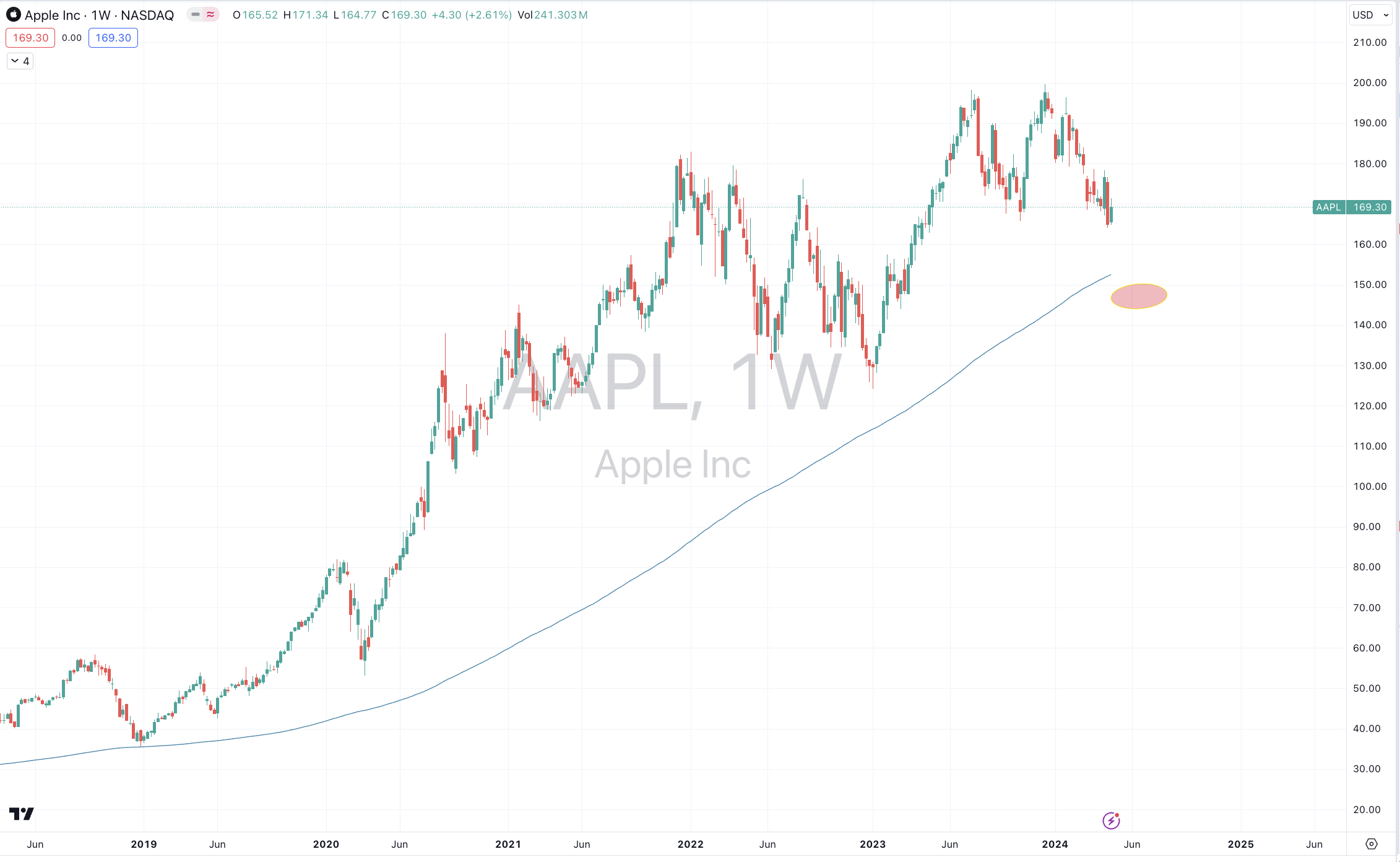 Apple’s stock price is nearing mean reversion