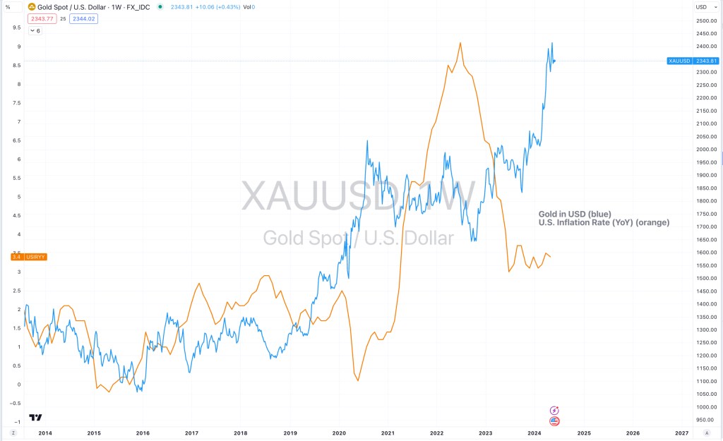I recall ‘gold bugs’ commonly telling us that owning Gold is a hedge against inflation and a weak economy and stock market.